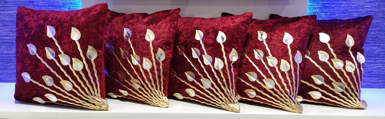 Maroon Golden Cushion Covers Set -6Pcs